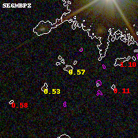 Object #2695   x,y = (2751, 4573)   RA, Dec = (16:15:48.432, -6:07:50.52) = (243.95180, -6.13070)   BPZ = 0.567 [0.106--0.782]   type = 10.20 (SB3_B10 - SB11_A_0_l)   chisq2 = 0.89   ODDS = 0.34   z_cluster = 0.203