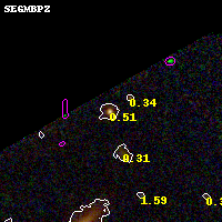 Black segments are analyzed here. Roll mouse over color images to view segments. Best viewed in a wide browser window (1200 pixels or more). Download SED & P(z) plots to view larger versions.