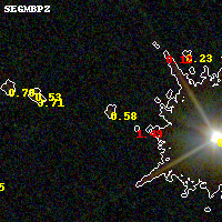Black segments are analyzed here. Roll mouse over color images to view segments. Best viewed in a wide browser window (1200 pixels or more). Download SED & P(z) plots to view larger versions.