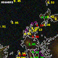 Black segments are analyzed here. Roll mouse over color images to view segments. Best viewed in a wide browser window (1200 pixels or more). Download SED & P(z) plots to view larger versions.