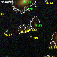 Black segments are analyzed here. Roll mouse over color images to view segments. Best viewed in a wide browser window (1200 pixels or more). Download SED & P(z) plots to view larger versions.