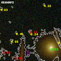 Black segments are analyzed here. Roll mouse over color images to view segments. Best viewed in a wide browser window (1200 pixels or more). Download SED & P(z) plots to view larger versions.