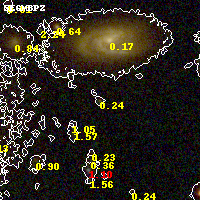 Black segments are analyzed here. Roll mouse over color images to view segments. Best viewed in a wide browser window (1200 pixels or more). Download SED & P(z) plots to view larger versions.