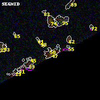 Black segments are analyzed here. Roll mouse over color images to view segments. Best viewed in a wide browser window (1200 pixels or more). Download SED & P(z) plots to view larger versions.