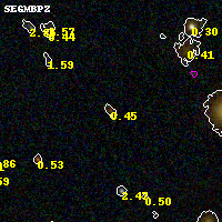 Black segments are analyzed here. Roll mouse over color images to view segments. Best viewed in a wide browser window (1200 pixels or more). Download SED & P(z) plots to view larger versions.