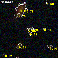 Black segments are analyzed here. Roll mouse over color images to view segments. Best viewed in a wide browser window (1200 pixels or more). Download SED & P(z) plots to view larger versions.