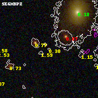 Black segments are analyzed here. Roll mouse over color images to view segments. Best viewed in a wide browser window (1200 pixels or more). Download SED & P(z) plots to view larger versions.