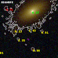 Black segments are analyzed here. Roll mouse over color images to view segments. Best viewed in a wide browser window (1200 pixels or more). Download SED & P(z) plots to view larger versions.