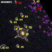 Black segments are analyzed here. Roll mouse over color images to view segments. Best viewed in a wide browser window (1200 pixels or more). Download SED & P(z) plots to view larger versions.