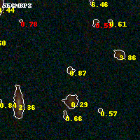Black segments are analyzed here. Roll mouse over color images to view segments. Best viewed in a wide browser window (1200 pixels or more). Download SED & P(z) plots to view larger versions.