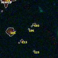 Object #106   x,y = (3392, 5604)   RA, Dec = (16:15:45.864, -6:06:48.60) = (243.94110, -6.11350)   BPZ = 0.576 [0.147--4.138]   type = 9.90 (SB3_B10 - SB2_B10)   stellarity = 0.01   chisq2 = 0.15   ODDS = 0.10   z_cluster = 0.203