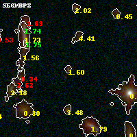 Black segments are analyzed here. Roll mouse over color images to view segments. Best viewed in a wide browser window (1200 pixels or more). Download SED & P(z) plots to view larger versions.