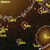 Object #1155   x,y = (2753, 3601)   RA, Dec = (16:15:48.432, -6:08:48.84) = (243.95180, -6.14690)   BPZ = 0.584 [0.553--0.610]   type = 4.00 (Ell4_A_0)   stellarity = 0.99   chisq2 = 2.71   ODDS = 1.00   z_cluster = 0.203