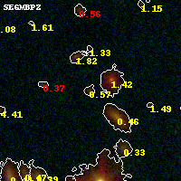 Black segments are analyzed here. Roll mouse over color images to view segments. Best viewed in a wide browser window (1200 pixels or more). Download SED & P(z) plots to view larger versions.