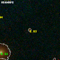 Object #1184 x,y = (3408, 3587) RA, Dec = (16:15:45.792, -6:08:49.56) = (243.94080, -6.14710) BPZ = 3.826 [3.586--4.021] type = 9.50 (SB3_B10 - SB2_B10) chisq2 = 0.14 ODDS = 0.91 z_cluster = 0.203