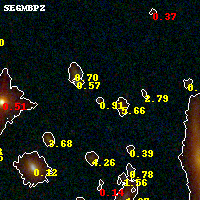Object #1197 x,y = (4688, 3563) RA, Dec = (16:15:40.632, -6:08:51.00) = (243.91930, -6.14750) BPZ = 0.907 [0.609--5.566] type = 8.90 (SB2_B10 - SB1_B10) chisq2 = 0.95 ODDS = 0.13 z_cluster = 0.203