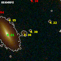 Object #1282 x,y = (3601, 3425) RA, Dec = (16:15:45.024, -6:08:59.28) = (243.93760, -6.14980) BPZ = 0.305 [0.110--3.260] type = 6.60 (Scd_B10 - Sbc_B10) chisq2 = 0.24 ODDS = 0.11 z_cluster = 0.203