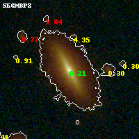 Object #1296 x,y = (3524, 3415) RA, Dec = (16:15:45.312, -6:09:00.00) = (243.93880, -6.15000) BPZ = 0.212 [0.176--0.246] type = 3.20 (Ell5_A_0 - Ell4_A_0) chisq2 = 0.15 ODDS = 0.99 z_cluster = 0.203