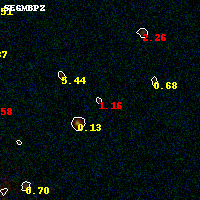 Object #1845 x,y = (4597, 2384) RA, Dec = (16:15:40.992, -6:10:01.56) = (243.92080, -6.16710) BPZ = 1.160 [0.284--2.594] type = 10.20 (SB3_B10 - SB11_A_0_l) chisq2 = 1.66 ODDS = 0.24 z_cluster = 0.203
