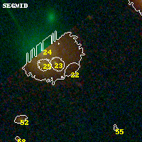 Object #22 x,y = (2440, 5925) RA, Dec = (16:15:49.680, -6:06:29.16) = (243.95700, -6.10810) BPZ = 0.523 [0.103--3.995] type = 8.10 (SB1_B10 - SB2_B10) chisq2 = 0.81 ODDS = 0.16 z_cluster = 0.203