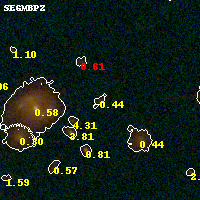 Object #263 x,y = (2044, 5184) RA, Dec = (16:15:51.264, -6:07:13.80) = (243.96360, -6.12050) BPZ = 0.443 [0.145--4.148] type = 9.50 (SB3_B10 - SB2_B10) chisq2 = 0.39 ODDS = 0.16 z_cluster = 0.203
