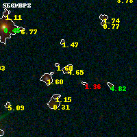 Object #544 x,y = (3876, 4612) RA, Dec = (16:15:43.896, -6:07:48.00) = (243.93290, -6.13000) BPZ = 4.651 [4.424--5.286] type = 8.50 (SB2_B10 - SB1_B10) chisq2 = 0.41 ODDS = 0.76 z_cluster = 0.203