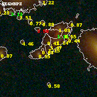 Object #616 x,y = (1998, 4460) RA, Dec = (16:15:51.456, -6:07:57.00) = (243.96440, -6.13250) BPZ = 1.147 [0.316--1.279] type = 8.30 (SB1_B10 - SB2_B10) chisq2 = 0.36 ODDS = 0.63 z_cluster = 0.203