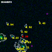 Object #1542 x,y = (3747, 3186) RA, Dec = (23:08:16.632, -2:10:47.28) = (347.06930, -2.17980) BPZ = 0.920 [0.791--1.532] type = 9.70 (SB3_B10 - SB2_B10) chisq2 = 0.49 ODDS = 0.44 z_cluster = 0.297