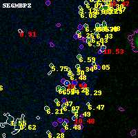Object #1544 x,y = (4492, 3190) RA, Dec = (23:08:13.656, -2:10:47.28) = (347.05690, -2.17980) BPZ = 6.298 [5.985--8.984] type = 6.00 (Sbc_B10) chisq2 = 0.00 ODDS = 0.38 z_cluster = 0.297