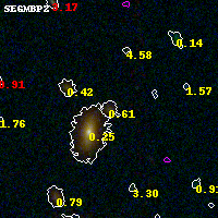 Object #1886 x,y = (3295, 2997) RA, Dec = (23:08:18.456, -2:10:58.80) = (347.07690, -2.18300) BPZ = 0.611 [0.113--0.991] type = 8.00 (SB1_B10) chisq2 = 0.10 ODDS = 0.42 z_cluster = 0.297