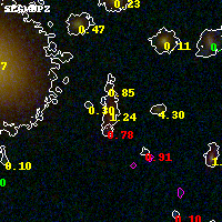 Object #2335 x,y = (3109, 2617) RA, Dec = (23:08:19.200, -2:11:21.48) = (347.08000, -2.18930) BPZ = 1.240 [1.141--1.518] type = 6.40 (Sbc_B10 - Scd_B10) chisq2 = 0.09 ODDS = 0.55 z_cluster = 0.297