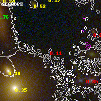 Object #2670 x,y = (2017, 2443) RA, Dec = (23:08:23.568, -2:11:31.92) = (347.09820, -2.19220) BPZ = 0.108 [0.090--2.297] type = 11.00 (SB11_A_0_l) chisq2 = 6.10 ODDS = 0.25 z_cluster = 0.297