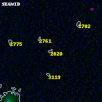 Object #2820 x,y = (1326, 2341) RA, Dec = (23:08:26.328, -2:11:38.04) = (347.10970, -2.19390) BPZ = 0.761 [0.223--5.658] type = 3.00 (Ell5_A_0) chisq2 = 0.10 ODDS = 0.09 z_cluster = 0.297