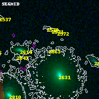 Object #2963 x,y = (3478, 2445) RA, Dec = (23:08:17.712, -2:11:31.92) = (347.07380, -2.19220) BPZ = 10.255 [0.609--10.354] type = 5.00 (ES0_B10) chisq2 = 900.00 ODDS = 0.32 z_cluster = 0.297