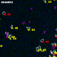 Object #3690 x,y = (3987, 1826) RA, Dec = (23:08:15.672, -2:12:09.00) = (347.06530, -2.20250) BPZ = 0.917 [0.516--2.325] type = 9.00 (SB2_B10) chisq2 = 0.93 ODDS = 0.19 z_cluster = 0.297