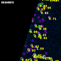 Object #3805 x,y = (408, 1872) RA, Dec = (23:08:30.000, -2:12:06.12) = (347.12500, -2.20170) BPZ = 0.087 [0.069--3.367] type = 5.70 (Sbc_B10 - ES0_B10) chisq2 = 0.00 ODDS = 0.06 z_cluster = 0.297
