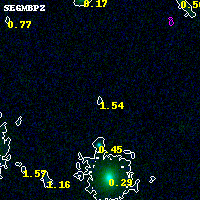 Object #3870 x,y = (1181, 1726) RA, Dec = (23:08:26.904, -2:12:15.12) = (347.11210, -2.20420) BPZ = 1.536 [0.203--3.114] type = 9.50 (SB3_B10 - SB2_B10) chisq2 = 0.00 ODDS = 0.09 z_cluster = 0.297