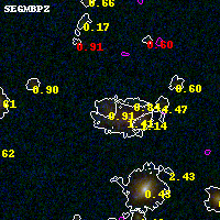Object #4019 x,y = (2324, 1844) RA, Dec = (23:08:22.344, -2:12:07.92) = (347.09310, -2.20220) BPZ = 0.913 [0.792--0.996] type = 9.40 (SB2_B10 - SB3_B10) chisq2 = 0.40 ODDS = 0.90 z_cluster = 0.297