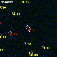 Object #1036 x,y = (1804, 1268) RA, Dec = (23:08:24.408, -2:12:42.48) = (347.10170, -2.21180) BPZ = 1.355 [1.142--1.649] type = 9.00 (SB2_B10) chisq2 = 1.39 ODDS = 0.56 z_cluster = 0.297