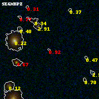 Object #105 x,y = (2787, 3375) RA, Dec = (23:08:20.472, -2:10:36.12) = (347.08530, -2.17670) BPZ = 0.915 [0.189--4.316] type = 9.30 (SB2_B10 - SB3_B10) chisq2 = 1.24 ODDS = 0.18 z_cluster = 0.297