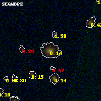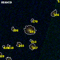 Object #181 x,y = (1685, 3112) RA, Dec = (23:08:24.888, -2:10:51.96) = (347.10370, -2.18110) BPZ = 0.143 [0.078--0.187] type = 4.00 (Ell4_A_0) chisq2 = 0.25 ODDS = 0.89 z_cluster = 0.297
