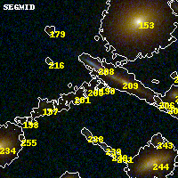 Object #200 x,y = (2588, 3063) RA, Dec = (23:08:21.288, -2:10:54.84) = (347.08870, -2.18190) BPZ = 1.073 [0.102--1.379] type = 8.30 (SB1_B10 - SB2_B10) chisq2 = 0.55 ODDS = 0.19 z_cluster = 0.297
