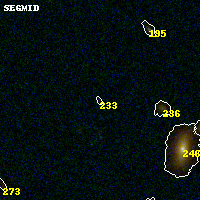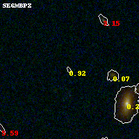 Object #233 x,y = (3194, 3024) RA, Dec = (23:08:18.864, -2:10:57.00) = (347.07860, -2.18250) BPZ = 0.922 [0.179--4.365] type = 8.70 (SB2_B10 - SB1_B10) chisq2 = 0.94 ODDS = 0.25 z_cluster = 0.297