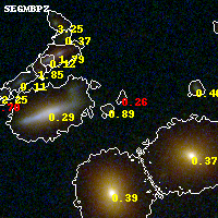 Object #313 x,y = (2178, 2875) RA, Dec = (23:08:22.920, -2:11:06.00) = (347.09550, -2.18500) BPZ = 0.891 [0.093--1.103] type = 9.80 (SB3_B10 - SB2_B10) chisq2 = 0.63 ODDS = 0.23 z_cluster = 0.297