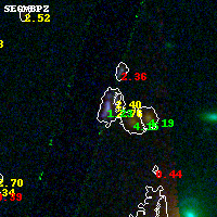 Object #489 x,y = (3321, 2452) RA, Dec = (23:08:18.336, -2:11:31.56) = (347.07640, -2.19210) BPZ = 1.227 [1.149--1.286] type = 10.30 (SB3_B10 - SB11_A_0_l) chisq2 = 0.22 ODDS = 0.99 z_cluster = 0.297