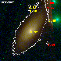 Object #535 x,y = (3320, 2256) RA, Dec = (23:08:18.360, -2:11:43.08) = (347.07650, -2.19530) BPZ = 0.373 [0.291--0.412] type = 3.10 (Ell5_A_0 - Ell4_A_0) chisq2 = 0.34 ODDS = 0.90 z_cluster = 0.297