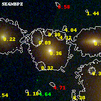 Object #631 x,y = (1474, 2168) RA, Dec = (23:08:25.728, -2:11:48.48) = (347.10720, -2.19680) BPZ = 0.365 [0.281--0.406] type = 3.00 (Ell5_A_0) chisq2 = 0.16 ODDS = 0.88 z_cluster = 0.297