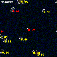Object #69 x,y = (1384, 3409) RA, Dec = (23:08:26.088, -2:10:33.96) = (347.10870, -2.17610) BPZ = 0.574 [0.163--4.850] type = 9.90 (SB3_B10 - SB2_B10) chisq2 = 1.30 ODDS = 0.12 z_cluster = 0.297