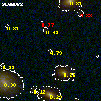 Object #691 x,y = (1975, 2082) RA, Dec = (23:08:23.736, -2:11:53.52) = (347.09890, -2.19820) BPZ = 4.795 [0.530--5.321] type = 10.40 (SB3_B10 - SB11_A_0_l) chisq2 = 0.23 ODDS = 0.58 z_cluster = 0.297