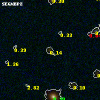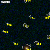Object #721 x,y = (2520, 1982) RA, Dec = (23:08:21.552, -2:11:59.64) = (347.08980, -2.19990) BPZ = 0.144 [0.058--4.085] type = 4.00 (Ell4_A_0) chisq2 = 0.67 ODDS = 0.59 z_cluster = 0.297
